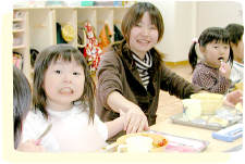 偏食を解消して、丈夫な体づくりのために、バランスのとれた給食を実施しています。